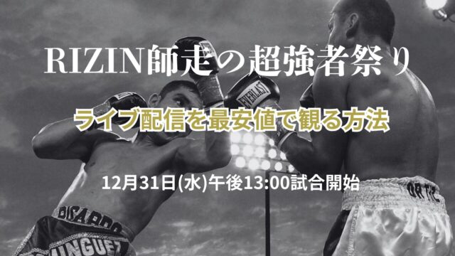 RIZIN 『RIZIN師走の超強者祭り』のライブ配信を最安値観る方法 2025年12月15日 mie96259625@gmail.com エンタメライフ 12月31日開催『RIZIN師走の超強者祭り』(RIZIN大晦日2025)のライブ配信を最安値観る方法 2025年12月31日(水) 昼1 …